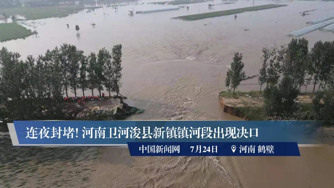 7月23日,受災嚴重的河南省鶴壁市浚縣衛河出現決口,通往外界的道路全部損毀,電力、通訊中斷,與外界失去聯系,村民正常生活受到嚴重影響。